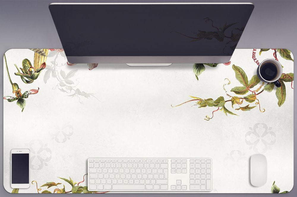 Podloga za pisalno mizo bo uporabna za tiste, ki delajo v domači pisarni. Ko več časa preživimo pred računalnikom, več dnevnih opravil opravimo za pisalno mizo. To pomeni, da je mizna plošča izpostavljena uničevanju v večji meri kot običajno. Splača se investirati v dobro zaščito pisalne mize. Material, iz katerega je podloga narejena omogoča polno zaščito mizne plošče pred polivanjem in praskami. Namizna podloga Exotic flora se lahko uporablja tudi kot podloga za notebook.