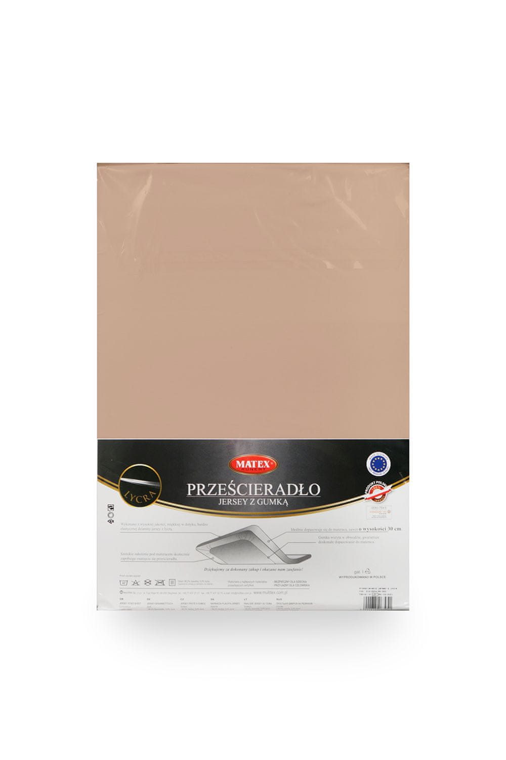 Jersey rjuha z lycro in elastiko za velikost vzmetnice: 130/140×190/200 cm, teža: 190, sestava: 96,5% bombaž 3,5% lycra, certifikat OEKO-TEX