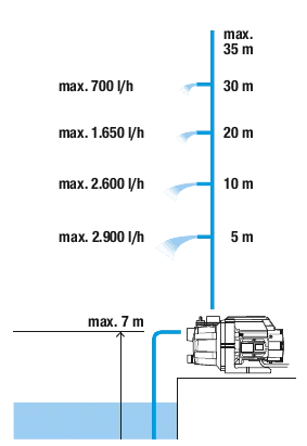 | Največja samosesalna višina | 7 m |