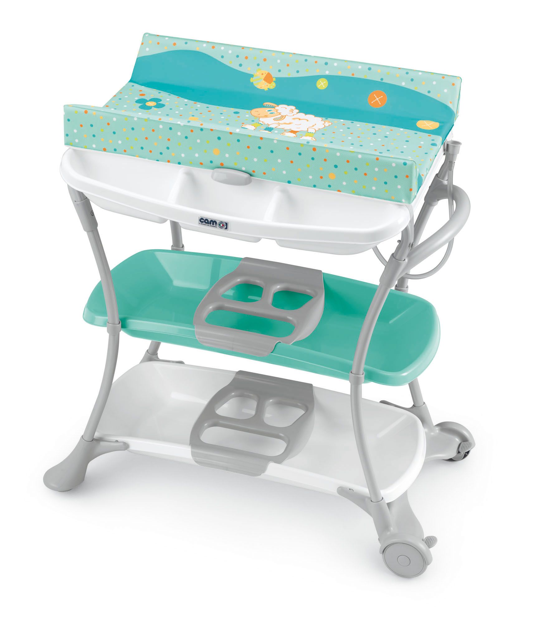 Gre za stabilno mizo, opremljeno s policami. Nekateri modeli so opremljeni tudi z zaklepnimi kolesci. Nosilnost mize je približno 11 kg, kar ustreza teži otroka do 14 mesecev.
