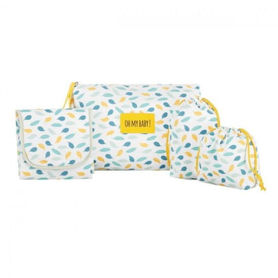 S tem priročnim kompletom lahko organizirate vso opremo za previjanje dojenčka in jo preprosto prelagate iz ene torbe v drugo. Vključuje veliko torbo z žepi, 2 manjši torbi in previjalno podlogo. Celoten opis