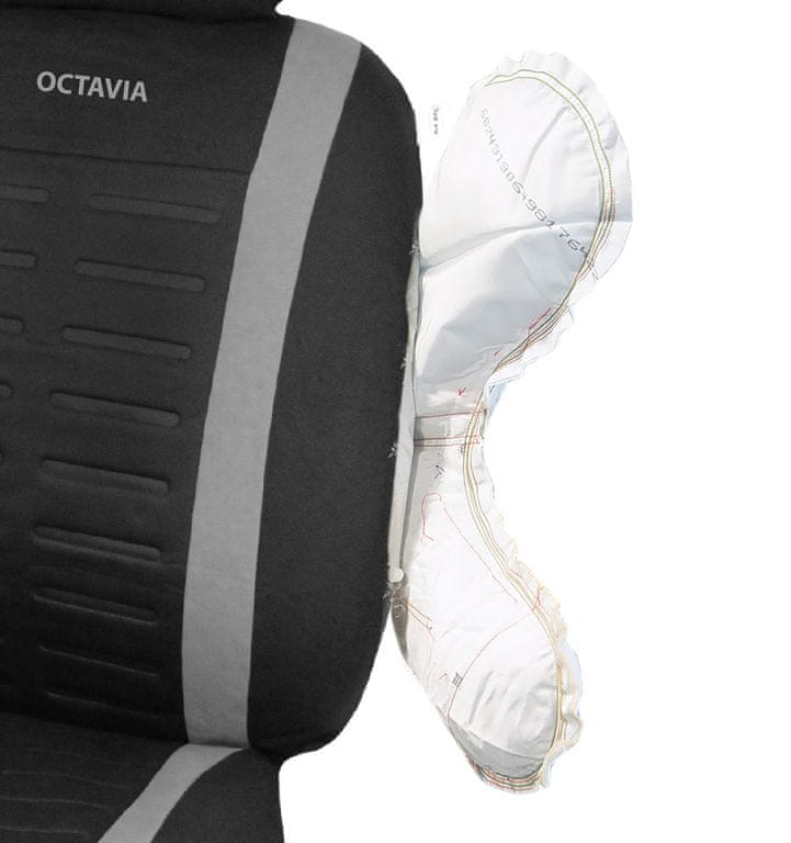 Avto prevleke za sedeže Madrid z vezenino OCTAVIA so izdelani in certificirani za uporabo na sedežih vozil s stranskimi zračnimi blazinami. V primeru sprožitve zračne blazine se posebej zašit šiv na strani avtomobilskega sedeža pretrga.