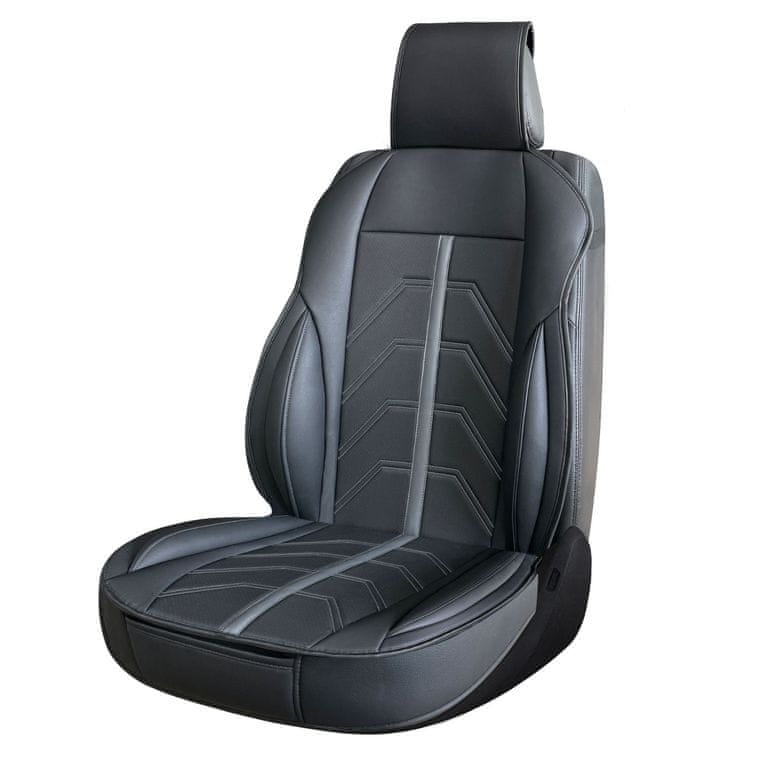 Univerzalna športna prevleka za en avtomobilski sedež, oblazinjenje iz 7 mm pene, integrirana prevleka za naslonjalo za glavo, združljiva s stranskimi zračnimi blazinami in ogrevanimi sedeži, vrhunsko perforirano sintetično usnje, sprednji žep za telefon, Celoten opis