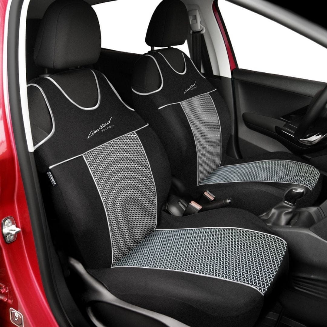 Prevleke za sprednje avto sedeže LIMITED so izdelane iz 100% visokokakovostnega črnega poliestra tako na stranskih delih kot tudi na t.i. „hrbtišču“ sedeža.