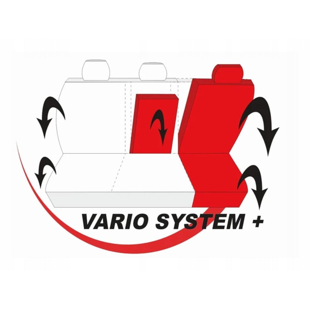 – enojna prevleka za voznikov sedež– dvojna prevleka za sovoznikov sedež– 3 prevleke za vzglavnike– kljuke za montažo prevlekBarva: temno siva (črte)