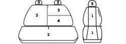 Prevleke so izdelane iz žakard tkanine (T06) v sedežnem delu in ojačane poliestrske pletenine. Laminirane so iz 4 mm poliuretanske pene in podloge, zaradi česar se material popolnoma prilagodi sedežem, ne da bi pri tem povzročal gubanje.
