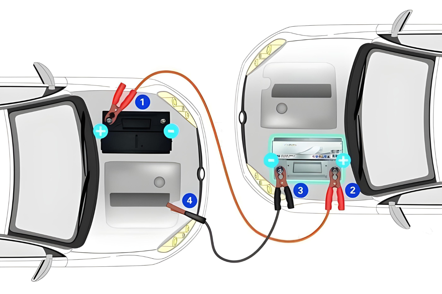 Zaženite dobro vozilo, nato pa zaženite vozilo s praznim akumulatorjem.