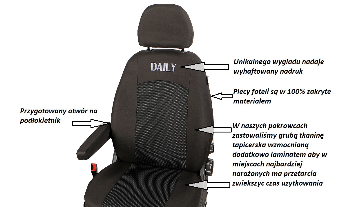 •  – zahvaljujoč temu prevleke ohranijo svojo polno funkcionalnost. Zelo kakovostne oblazinjene tkanine Prevleke v celoti iz debele tkanine (sprednji in zadnji del sedežev)