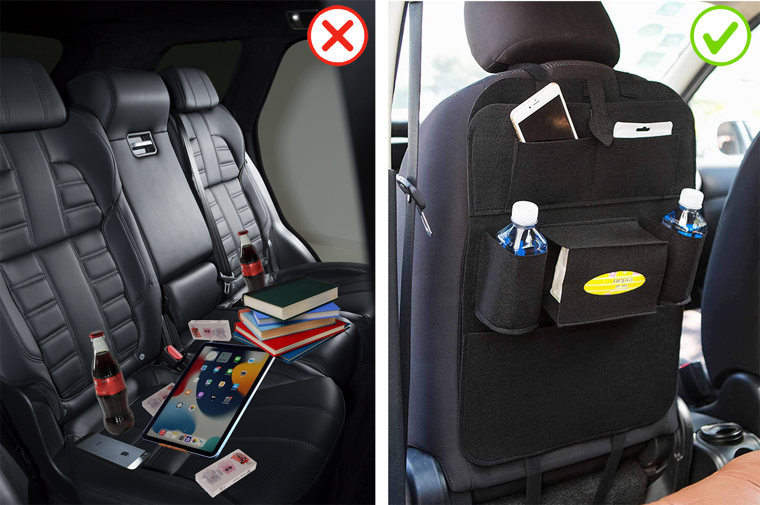 Organizator za avtosedež je odlična rešitev, ki vam bo omogočila organiziranje in varno shranjevanje pogosto uporabljenih predmetov v avtomobilu. Zahvaljujoč njemu se boste izognili neredu