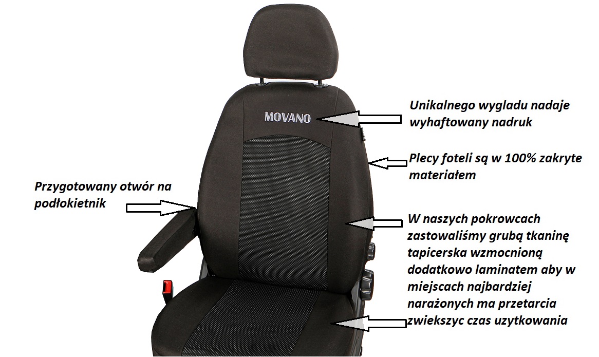 V skladu s 156. členom, 3. odstavkom zakonika PWP je napis na prevlekah sedežev zgolj informativne narave in navaja znamko ali model avtomobila, za katerega je prevleka namenjena, in ni mišljen kot originalen izdelek proizvajalca avtomobila. Na prevleko sedeža so priložene ustrezne informacije, vključno z imenom proizvajalca.