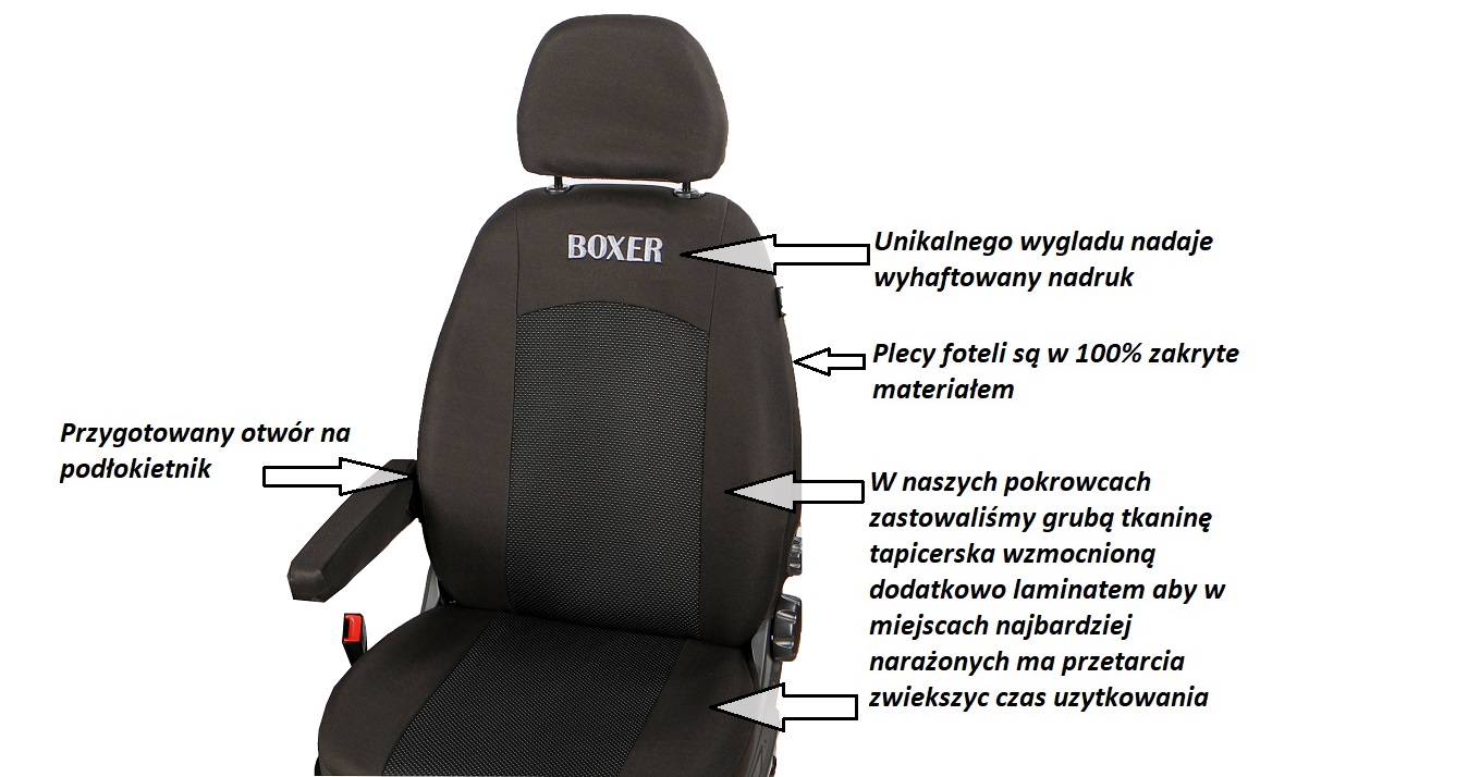 •  – zahvaljujoč temu prevleke ohranijo svojo polno funkcionalnost. Zelo kakovostne oblazinjene tkanine Prevleke v celoti iz debele tkanine (sprednji in zadnji del sedežev)