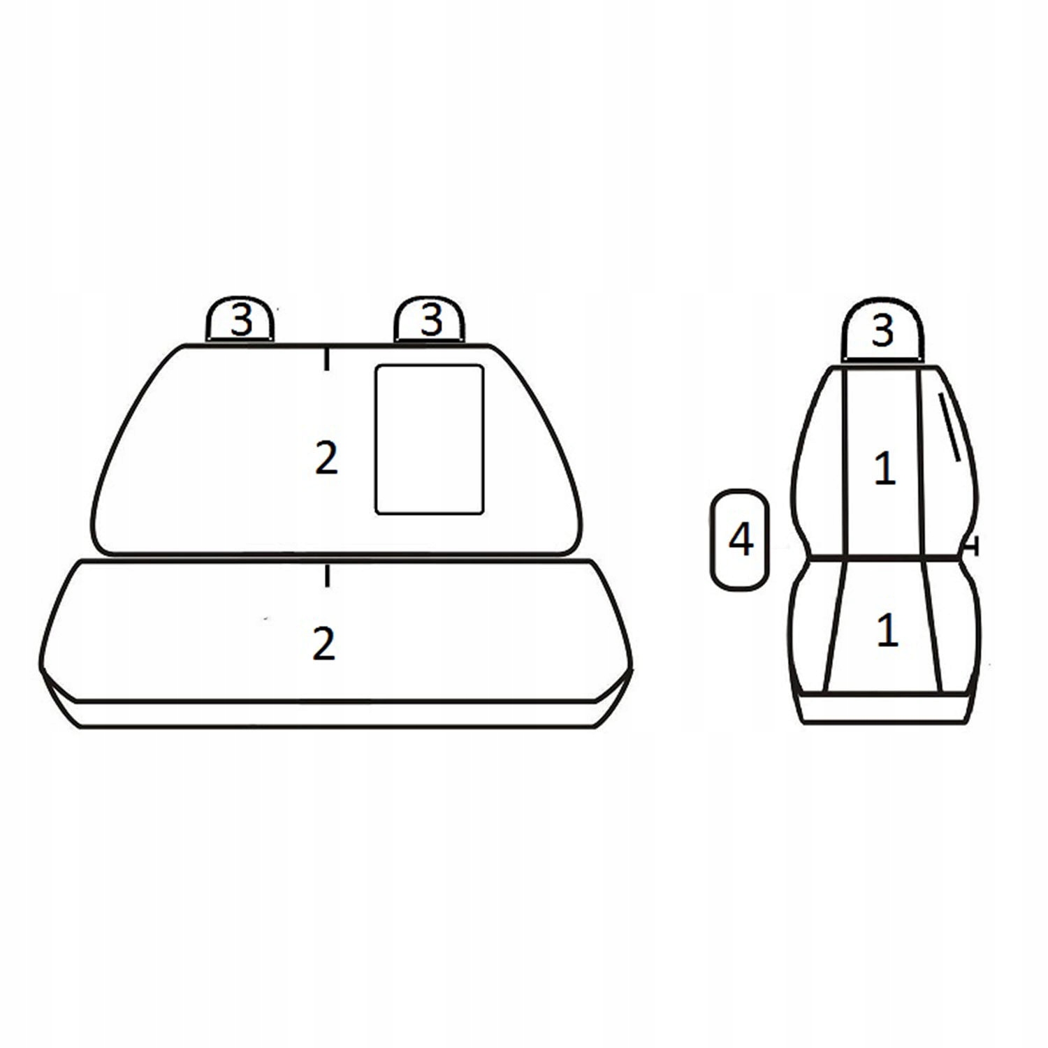 Prevleke so zasnovane za avtomobil z naslednjo razporeditvijo sedežev
