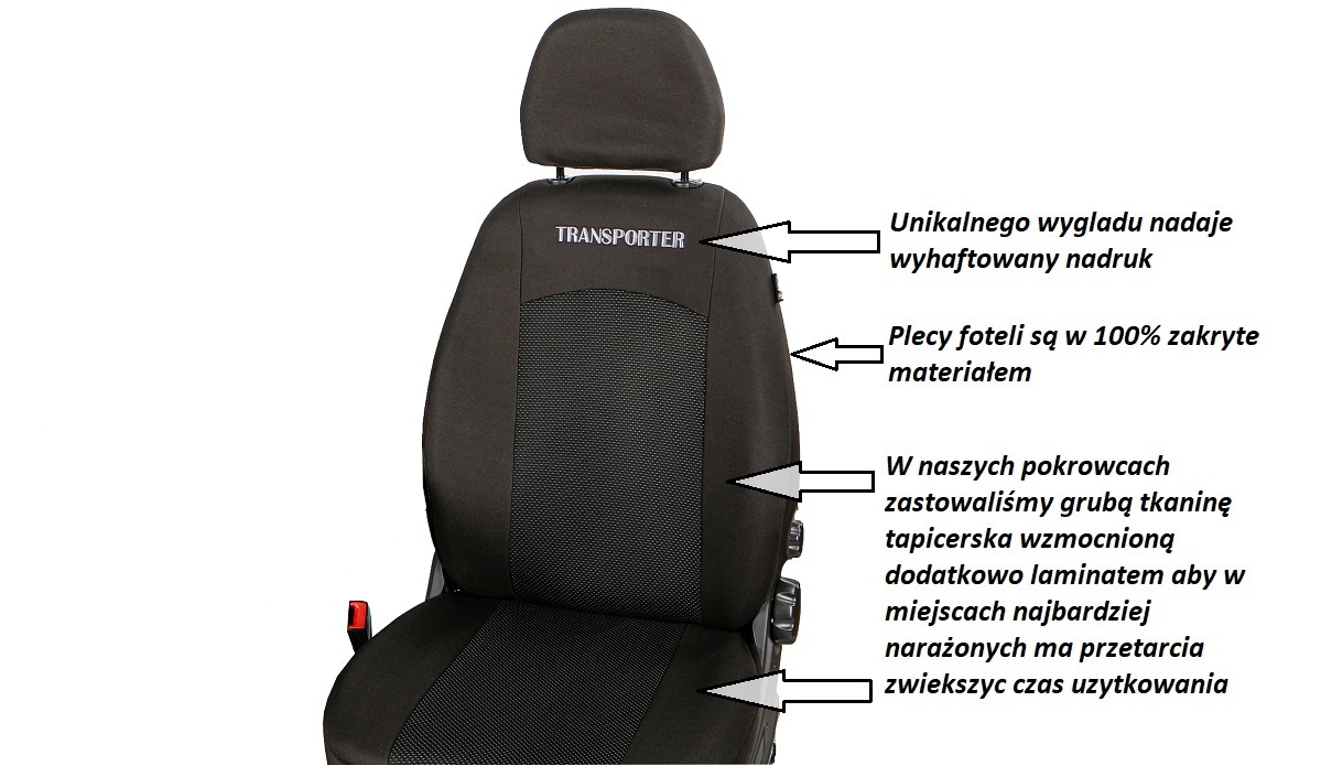 VW Transporter T5 T6 2003–2024 Prevleke za sedeže po meri Celoten opis