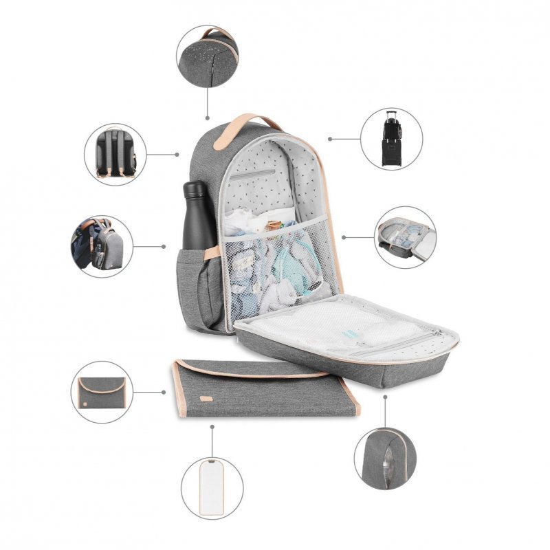• 1 stranski žep za stekleničko na zunanji strani in velik izoliran žep za stekleničke ali otroško hrano, ki je dostopen skozi sprednji del nahrbtnika