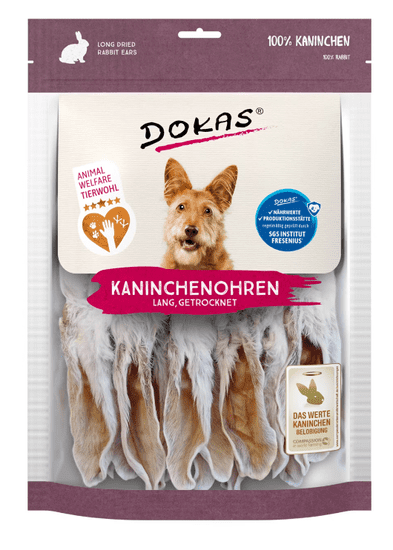 Dokas priboljški za pse, sušena zajčja ušesa z dlako. Primerno za dieto BARF. Celoten opis