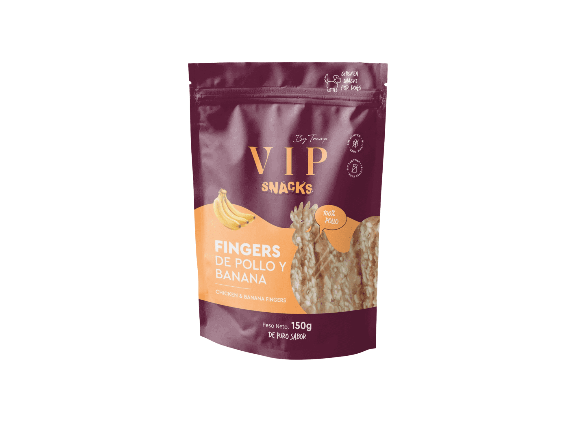 Pasji priboljški Tramp VIP Fingers „Piščanec & Banana“ so za pse vseh velikosti in starosti. Vsebujejo kar 79,5 % piščančjega mesa, ki je odličen vir pustih beljakovin, in banano (8 %), ki je bogata s kalijem za energijo in vitalnost. Priboljški so brez umetnih dodatkov in imajo mehko teksturo.