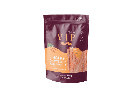 Pasji priboljški Tramp VIP Fingers „Piščanec & Korenje“ so za pse vseh velikosti in starosti. Vsebujejo 79,5 % piščančjega mesa, ki je odličen vir lahko prebavljivih beljakovin, in korenje (8 %), ki je bogato z vitamini in antioksidanti. Priboljški imajo mehko teksturo in ne vsebujejo umetnih dodatkov.