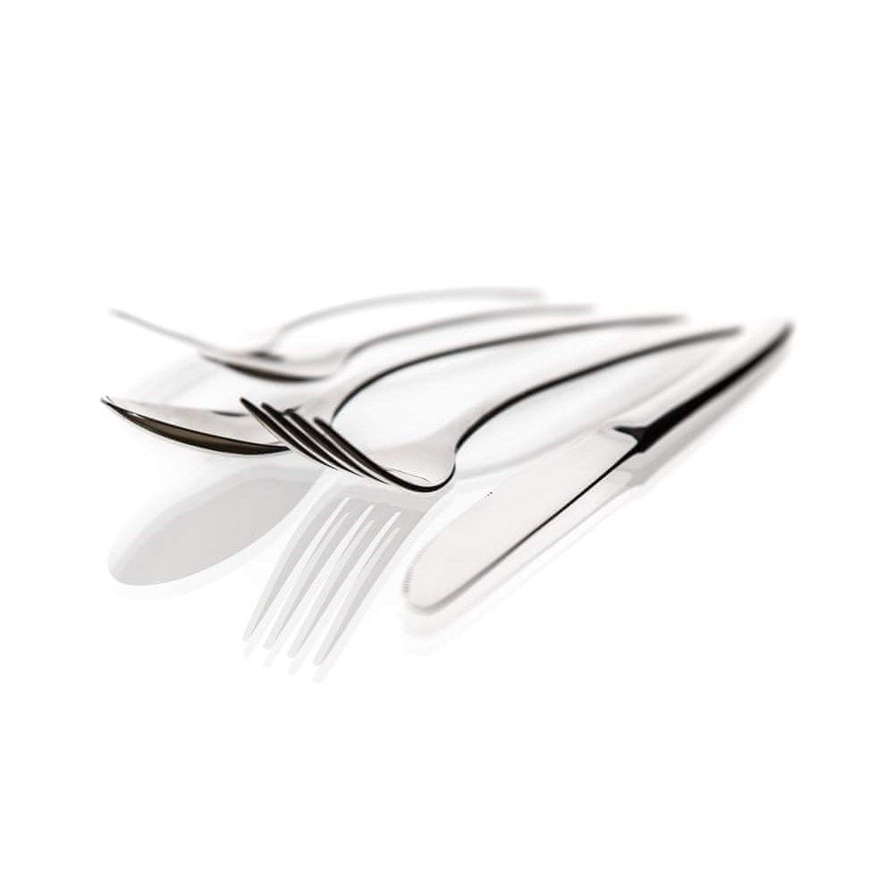 Komplet jedilnega pribora iz nerjavečega jekla NAMBO, 48 kosov, vključuje 8× jedilni nož, 8× jedilno vilico, 8× jedilno žlico, 8× čajno žličko, 8× desertno vilico, 8× žlico za latte. Celoten opis