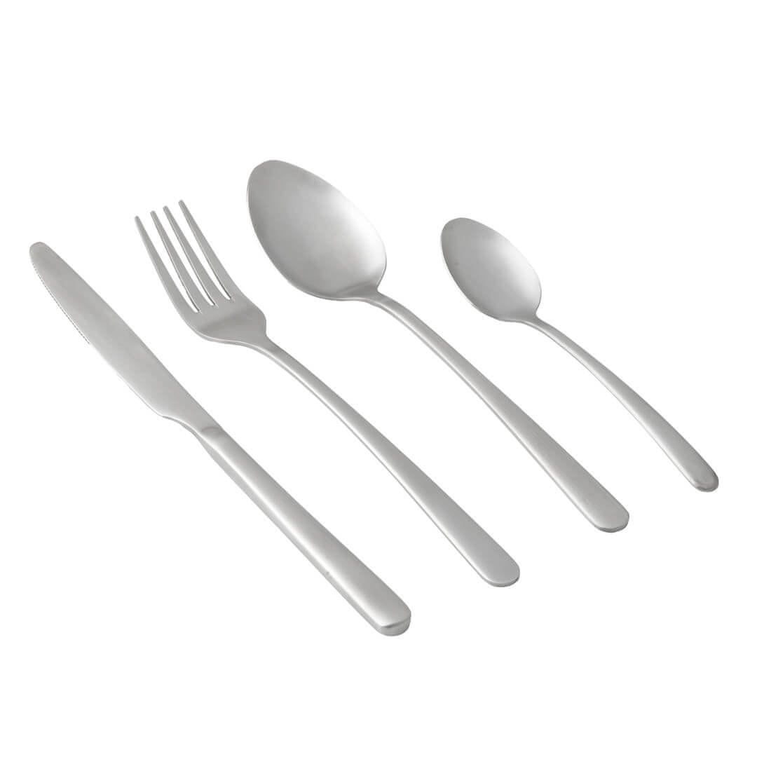 24-delni jedilni pribor je izdelan iz nerjavečega jekla s satenastim zaključkom, ki združuje prefinjen in sodoben videz, hkrati pa zmanjša vidnost prstnih odtisov in prask, kar zagotavlja dolgotrajno brezhiben videz. Idealen je tako za vsakodnevno uporabo kot tudi za posebne priložnosti. Elegantne linije in ergonomska oblika zagotavljajo udoben oprijem, zaradi česar je vsak obrok prijetna izkušnja. Komplet vključuje 6 vilic, 6 nožev, 6 žlic in 6 čajnih žličk. Primerno za pomivanje v pomivalnem stroju.