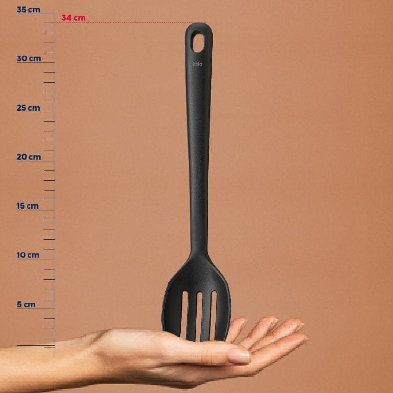 • material: plastika- dolžina: 32 cm- širina žlice: 6,5 cm- utori za odtekanje tekočine- ušesce za obešanje- primeren za pomivanje v pomivalnem stroju- serija: apart- blagovna znamka: kELA