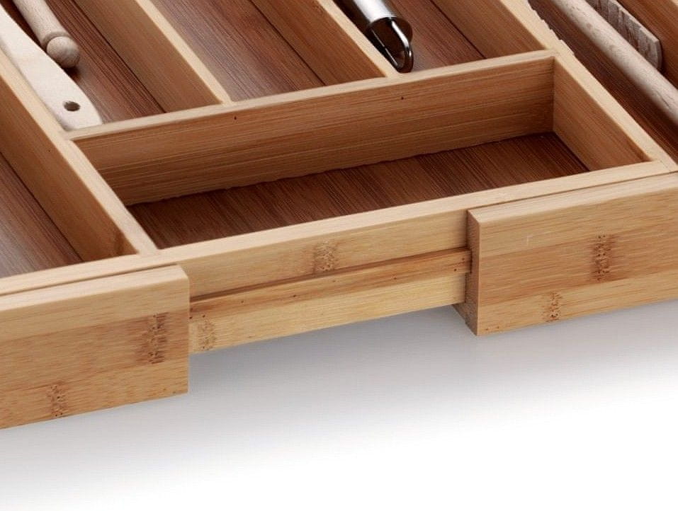 • material: naravni bambusov les- lahek, trpežen material z dolgo življenjsko dobo- zložljiva dolžina, ki se popolnoma prilagodi vašemu predalu- nastavljiva dolžina: 28,5 do 39 cm- globina: 33 cm- višina: 5 cm- …