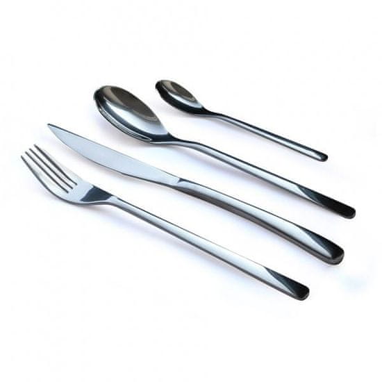 Komplet 24 kosov jedilnega pribora Firenze je izdelan iz nerjavečega jekla 18/0, kasetno pakiranje vsebuje:6 nožev – nož 21,5 x1,8 cm6 vilic – vilice 19,6 × 2,5 cm6 jušnih žlic – žlica 19,7 × 3,7 cm6 čajnih žličk – žlica 13,5 × 2,5 cm. Kakovosten jedilni pribor za vsakdanjo uporabo, primeren tudi za darilo. Primerno za pomivanje v pomivalnem stroju.