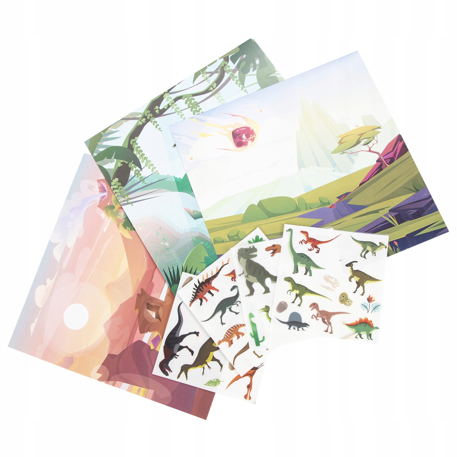 slike, natisnjene na papirju, vam omogočajo, da ustvarite svojo fantastično zgodbo v svetu dinozavrov, s čimer razvijate svojo in otrokovo domišljijo.