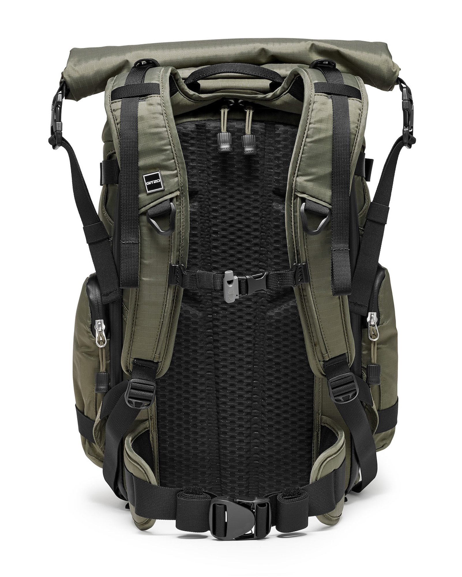 Ramenski jermeni nahrbtnika Gitzo Adventury so nastavljivi, zadaj pa je udoben prezračevalni sistem. Zgornji predel je raztegljiv s pokrovčkom za zvijanje na vrhu, tako da lahko varno shranite manjše dodatke, ki jih potrebujete za svojo avanturo na prostem. Tesnilne zadrge, vodoodbojni material in prevlečeno dno zagotavljajo, da se vreča lahko uporablja v vlažnih pogojih, in dežna prevleka, ki je tudi vključena, zagotavlja dodatno zaščito v slabih vremenskih razmerah.