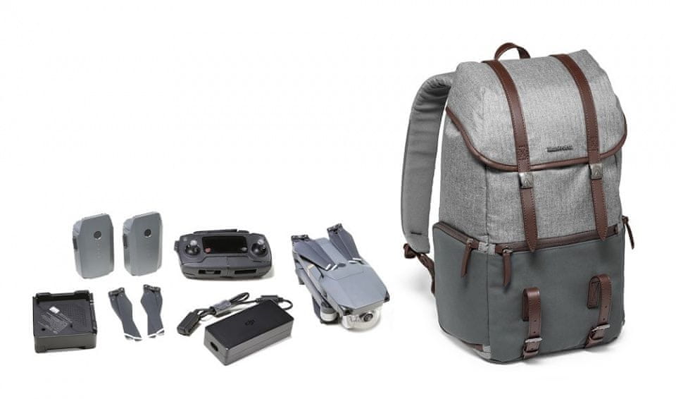 To pomeni, da je popolna rešitev za ročno nošenje za fotografe, ki želijo uporabnost in slog. Z oblazinjeno notranjo pregrado lahko preprosto shranite svoj srednji DSLR s priloženim objektivom 70–200/2,8 in 2 dodatnima objektivoma. Lahko pa shranite svojo vrhunsko kamero CSC z več objektivi. Ne glede na vaše načrte, ne glede na to, ali fotografirate v divjini ali mestu, lahko kadrirate in fotografirate z največjo svobodo. In imejte vso potrebno opremo varno in varno shranjeno v enem nahrbtniku. V tem nahrbtniku za fotoaparat lahko shranite tudi komplet DJI Mavic Pro Combo in ga lahko spremenite v vsakodnevni nahrbtnik za izlet, tako da odstranite pregrado. Še bolje, ima namenski predal za shranjevanje 15-palčnega prenosnika, tako da lahko ostanete povezani, kjer koli že ste. Z lahkoto naložite in delite svoje fotografije – naj vas ne skrbi, da boste morali čakati, dokler ne pridete domov! Zahvaljujoč zgornji in stranski zadrgi tega nahrbtnika lahko preprosto dostopate do svoje opreme in jo v hipu pospravite. Za vaše zagotovilo ima ta nahrbtnik zaščitni sistem Manfrotto, ki zagotavlja zaščito vaše opreme pred udarci. Veselite se prevoza brez stresa in nosite ta nahrbtnik udobno z nastavljivim naramnim pasom. Svoj stativ lahko prenašate tudi prek dveh nastavljivih usnjenih nastavkov. Ta nahrbtnik za fotoaparat je bil izdelan po visokih standardih v Italiji.