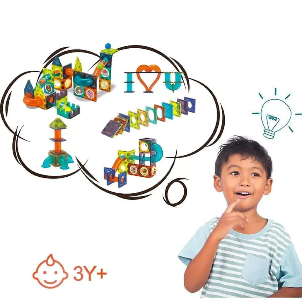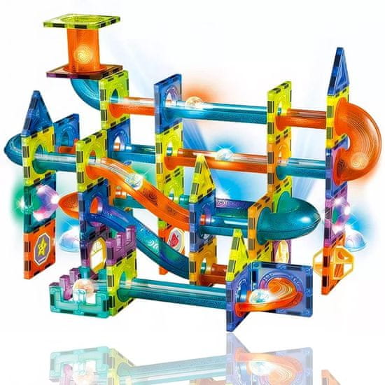 Izobraževalni komplet magnetnih kock Svetleča kroglična steza – 110 kosov