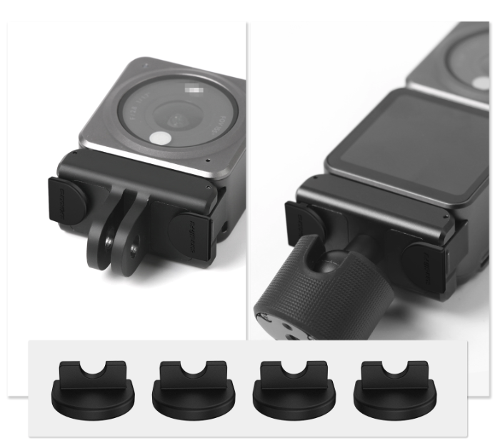 • Varnostni čepi proti padcu: Ti čepi pomagajo zakleniti zaklepno sponko med ACTION 2 in adapterjem/adapterjem s krogličnim zglobom, in tako preprečijo padec kamere med športnimi aktivnostmi, pa snemajo med kolesarjenjem. Mehak silikonski material: