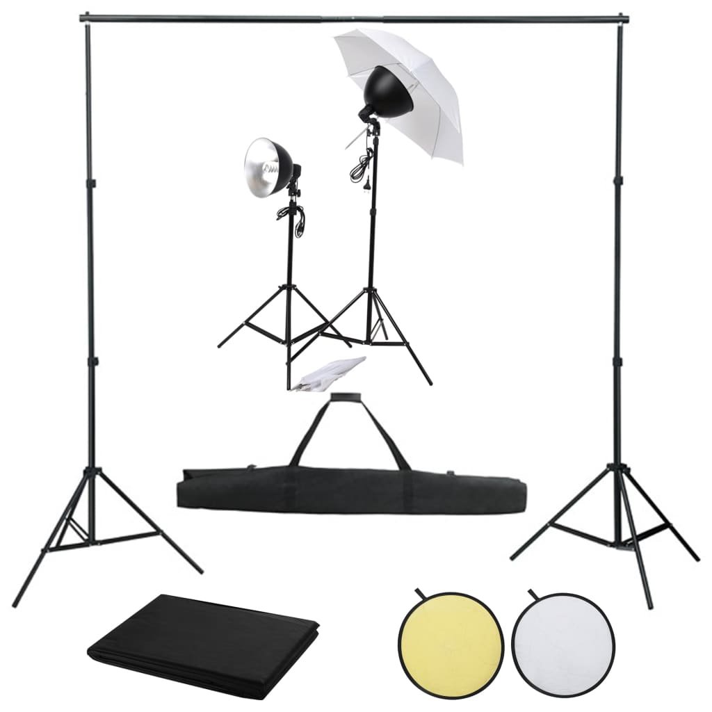 Vidaxl Foto studijski komplet s svetilkami, ozadjem in odbojnikom