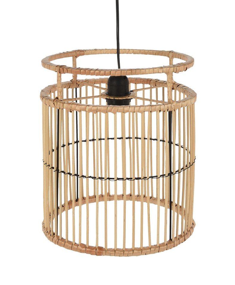 • Obesni lestenec iz bambusovega lesa- naravni materiali, izdelan iz prepletenega bambusovega lesa- svetloba prehaja skozi luknje in ustvarja mehko in dekorativno svetlobo v prostoru- priključni kabel dolžine 1 metra- primeren za žarnico E27, 40W- dimenzije: 28 × 30 cm- barva: naravna