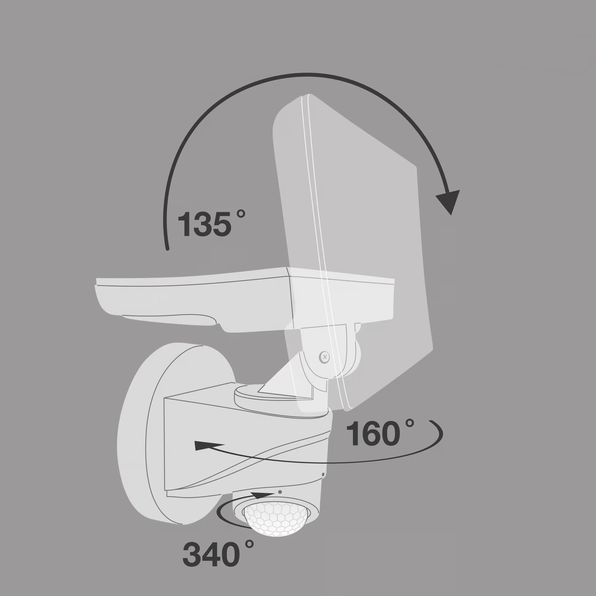 • Vgrajen senzor gibanja s kotom zaznavanja 150° in dosegom 3–12 m samodejno vklopi luč, ko zazna gibanje.