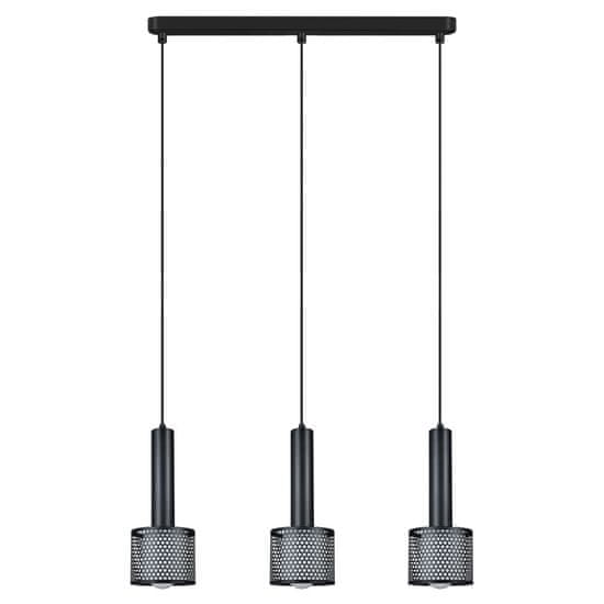 Ta črna viseča svetilka s tremi senčniki je elegantna kombinacija modernega dizajna in industrijskega sloga. Izdelana iz visokokakovostne črne kovine, je eleganten element, ki se odlično poda k notranjosti, opremljeni v modernem duhu. Trije valjasti senčniki dajejo svetilki prepoznaven videz, njihova odprta struktura pa omogoča subtilno igro svetlobe, kar ustvarja toplo in prijetno vzdušje. Viseča svetilka s tremi senčniki je zasnovana tako, da zaradi treh svetlobnih točk enakomerno osvetli prostor. Uporaba podnožja E27 omogoča izbiro žarnic ustrezne moči, s čimer se osvetlitev prilagodi individualnim potrebam. Preprosta oblika in elegantna črna barva naredita svetilko primerno za kuhinje, dnevne sobe, jedilnice in poslovne prostore. Je odlična izbira za tiste, ki iščejo funkcionalno osvetlitev s pridihom moderne elegance.