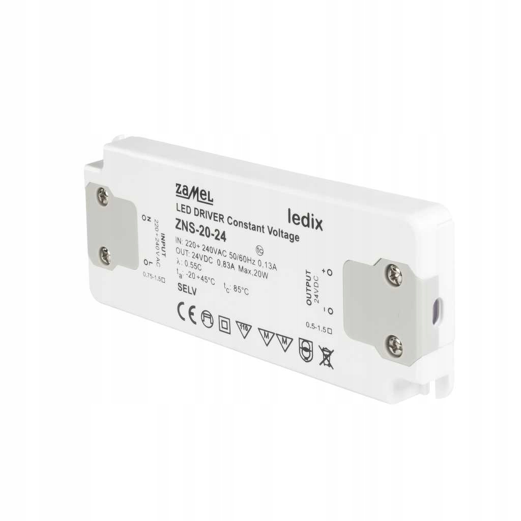 Preklopni napajalnik ZNS je zasnovan za uporabo v hišnih LED razsvetljavah. Njegova modularna zasnova omogoča enostavno in priročno namestitev na vodoravne in navpične površine v zaprtih prostorih. Napajalnik ima izhodno napetost 24 V DC. Na voljo je v širokem razponu izhodne moči (12–75W). Vgrajena zaščita zagotavlja neprekinjeno in nemoteno delovanje vseh priključenih LED komponent.