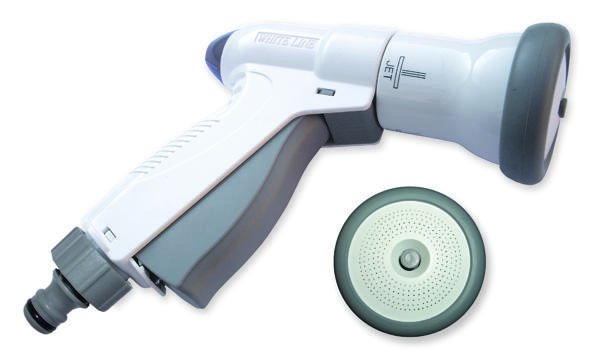 EXCLUSIVE WHITE LINE nastavljiva razpršilna pištola za vrtno cev razširja možnosti pršenja.