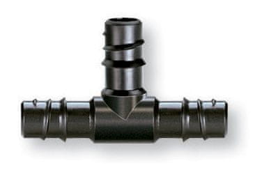 Claber spojni T kos navojni za povezavo treh delov 13–16 mm (1/2") glavne alkatenske ali kapljične cevi oziroma izdelavo razvodov na osnovni vodni liniji. V pakiranju je 10 kosov.
