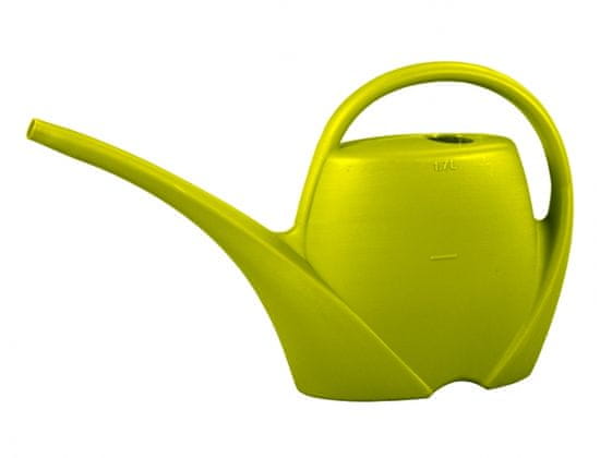 Plastična zelena posoda za zalivanje s prostornino 1,7 l in dimenzijami: 34,5 × 8 × 23 cm. Naglavni trak je ob straneh rahlo raztegnjen. Uporablja se v zaprtih prostorih in na prostem. Celoten opis