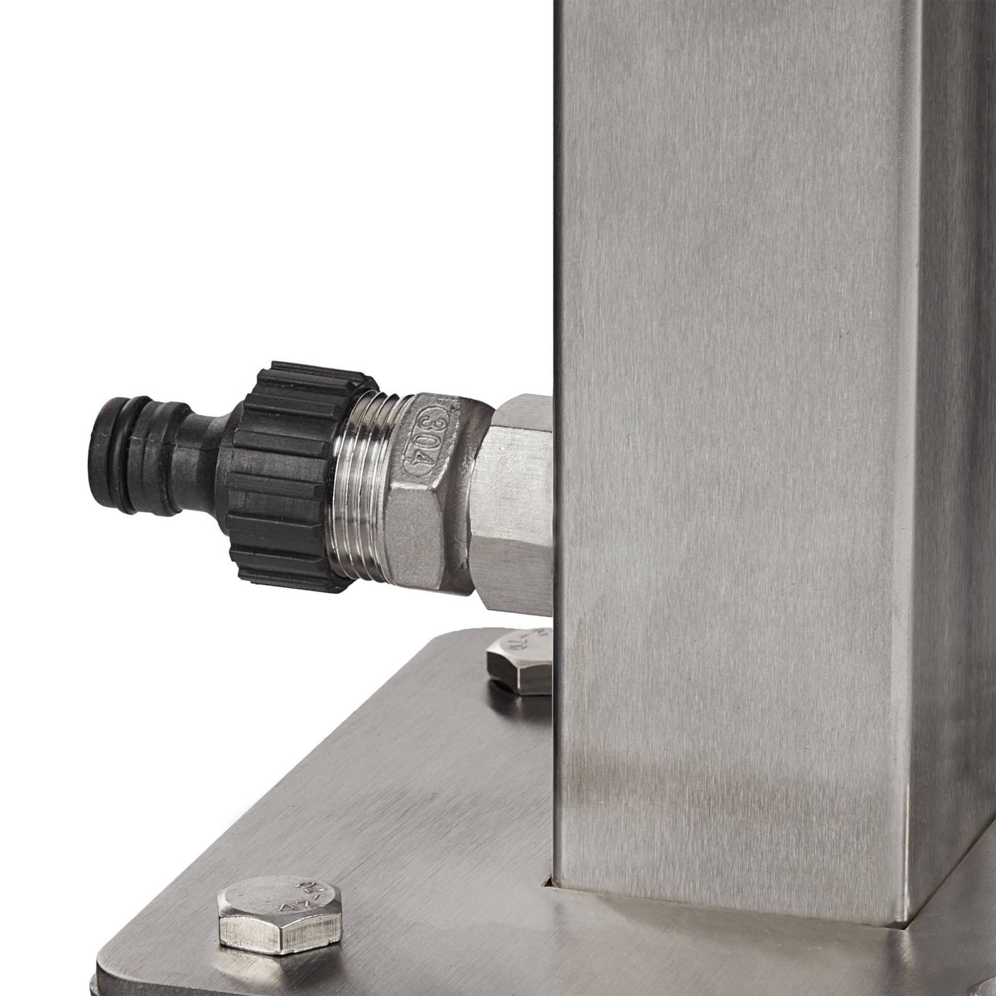 Dostop do vode na lahko dostopnem mestu olajša številna opravila na vrtu. S tem modelom z vgrajenim držalom za cev lahko vrtno cev priročno in lepo shranite, ne da bi se zmečkala. Zunanjo pipo uporabite za polnjenje vrča za vodo ali umivanje rok. Priključite vodno cev in gladko ter hitro zalijte celoten vrt. Zunanja pipa je izdelana iz nerjavečega jekla in jo je mogoče prilagodljivo namestiti na vrt tako, da jo s talnim nastavkom namestite v tla.