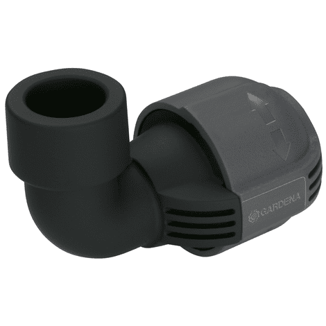 GARDENA L-priključek 25 mm x 3/4" se uporablja za priključitev škropilnikov na konec cevi. Patentirana tehnologija povezave „Quick & Easy“ omogoča montažo ali demontažo cevi brez orodja z obračanjem navojnega priključka za 140°. Navojni priključek L-konektorja je samotesnilni, kar zagotavlja varno delovanje brez puščanja vode.