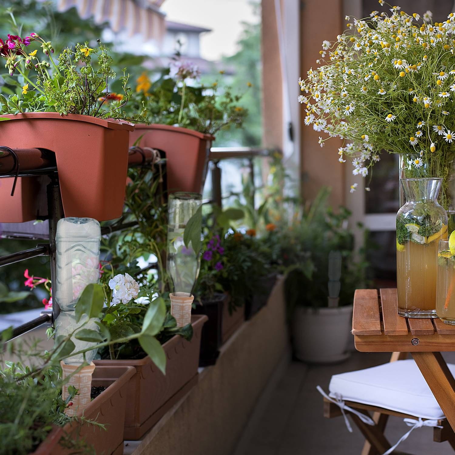 Glineni nastavki za samodejno zalivanje zagotavljajo, da bodo vaše rastline hidrirane v vročih dneh ali na počitnicah. Preprosto pritrdite 1,5-litrsko PET plastenko na šesterokotne konice in jih vstavite v zemljo za dosledno namakanje.