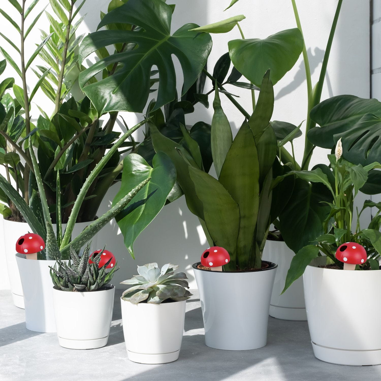 Avtomatski zalivalni stožci zagotavljajo optimalno oskrbo rastlin z vodo in zagotavljajo stalno hidracijo med vročimi poletji ali počitnicami. Preprosto postavite v zemljo in napolnite z vodo za brezskrbno nego rastlin.