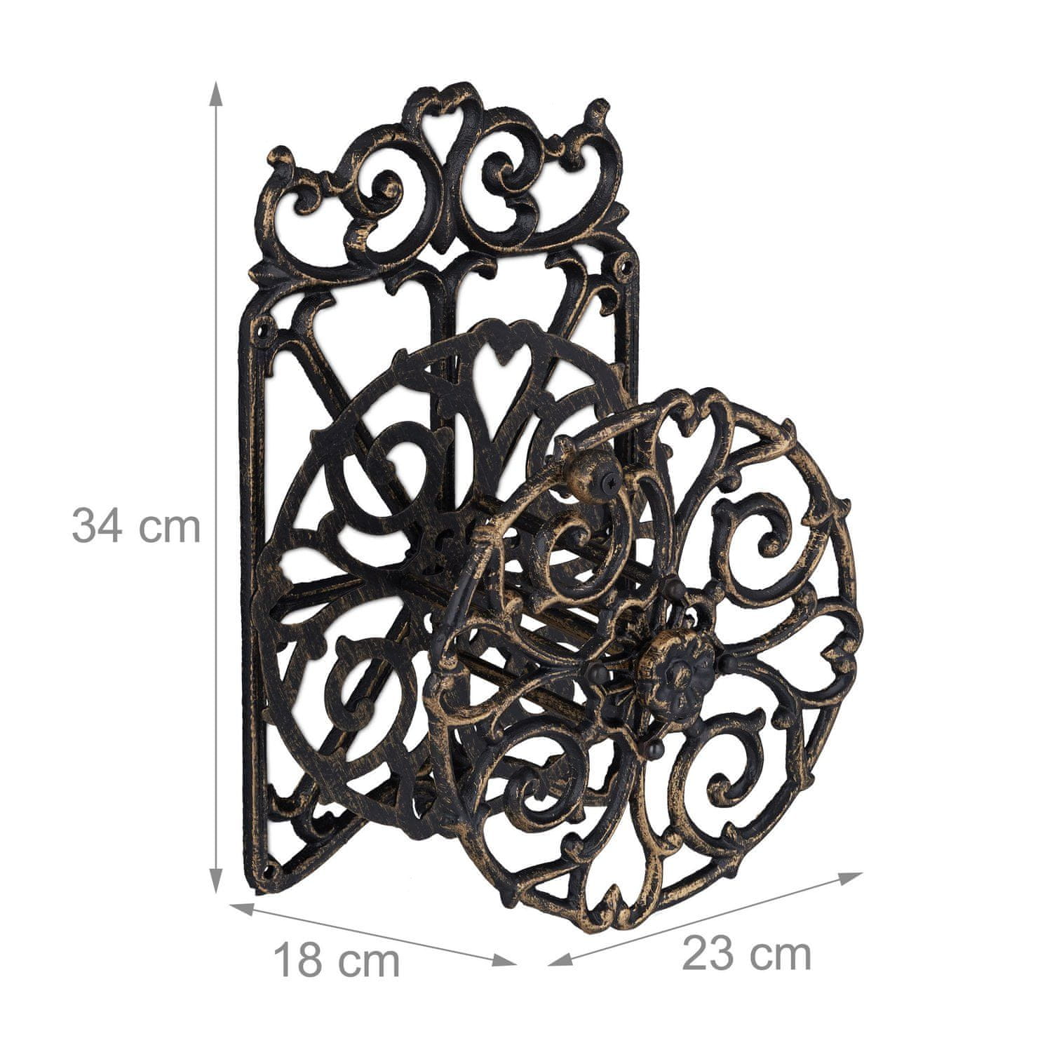 Rustikalno držalo za vrtno cev ponuja vintage dizajn, ki ohranja vaš vrt urejen in organiziran. To stensko držalo iz litega železa preprečuje zvijanje in trganje cevi, podaljšuje življenjsko dobo cevi in hkrati dodaja čar.
