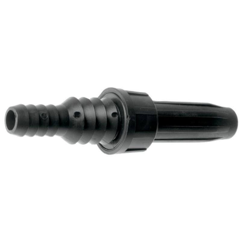 brizgalka iz črnega polietilena klasični priključek 1/2" in 3/4" – za boljšo pritrditev cevi je priporočljiva uporaba cevne objemke Celoten opis
