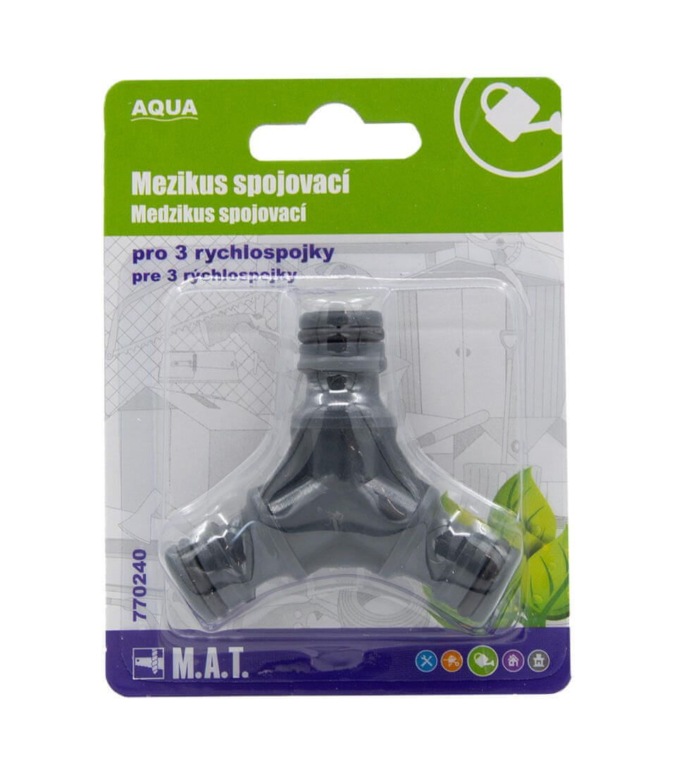 material: plastika Povezovalni kos za 3 priključke za cevi AQUA, primeren za podaljševanje ali povezovanje vrtnih cevi. Celoten opis