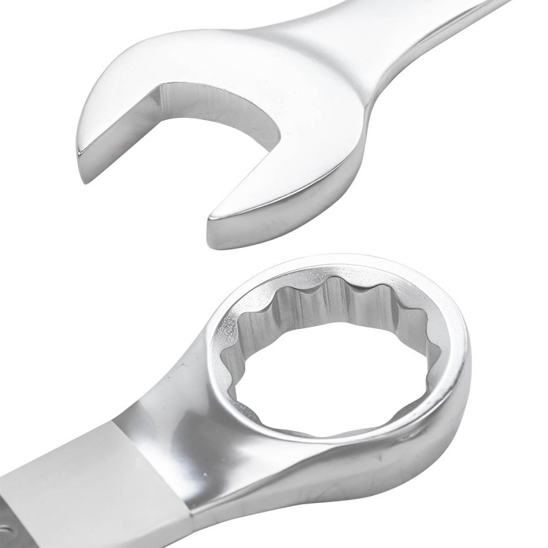 Viličasti ključ, zamik 15º, izdelan iz ogljikovega jekla, s satinirano kromirano površino ključa.