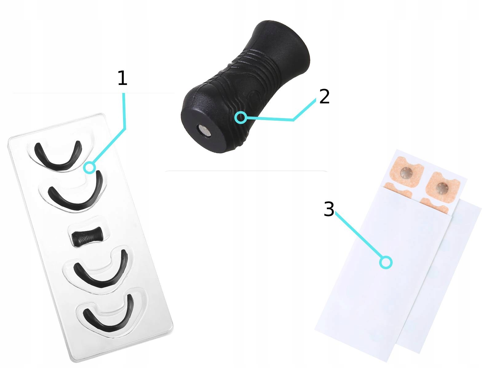 - Vključeno : 30 posebnih trakov z magnetom (za 15 dni), magnetni aplikator in 4 velikosti nosnih trakov.