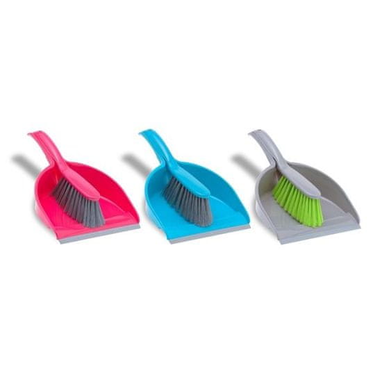 Komplet plastičnih metel vključuje plastično zajemalko z gumijasto palico in oblikovanim ročajem ter metlo s črnimi ščetinami Mešanica barv – barve ni mogoče izbrati Celoten opis