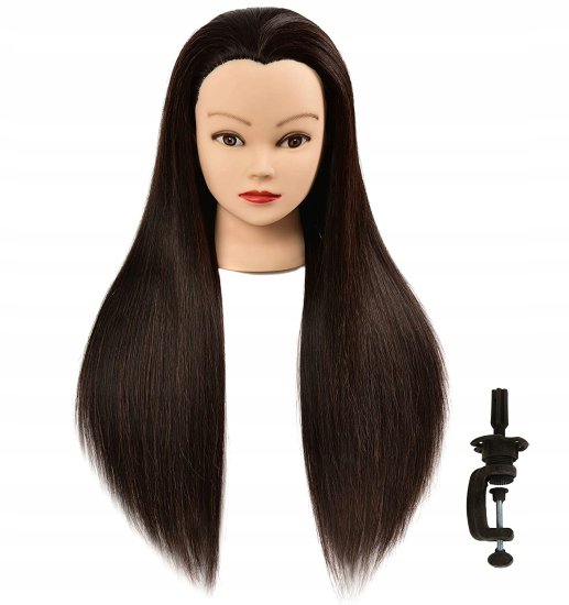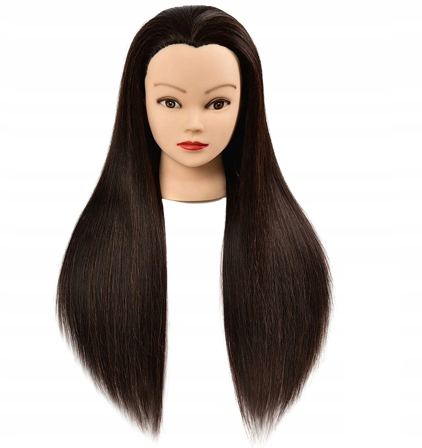 Treningovna frizerska glava s stojalom je popolno orodje za učenje in izpopolnjevanje frizerskih veščin. Njeni lasje so izdelani iz sintetičnih vlaken (High Temperature Fiber – material PET), ki se ne zapletajo in so odporni na visoke temperature ter različne načine oblikovanja. Pred prvo uporabo priporočamo večkratno razčesavanje las, da odstranite drobce, ki lahko nastanejo v proizvodnem procesu. Glava je polne velikosti (53 cm), kar omogoča širok spekter stilov, dolžina las pa znaša do 70 cm. Komplet poleg glave vsebuje tudi stojalo, s katerim lahko glavo pritrdite na mizo ali pisalno mizo.
